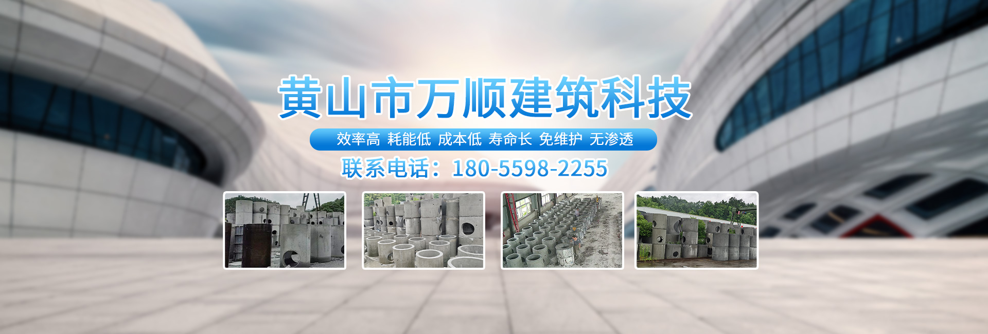 黃山市萬順建筑科技有限公司是集研發,生產制造,市場推廣為一體的綜合性企業。公司主要經營環保型預制鋼筋混凝土裝配式組合型檢查井和蓄水裝置等城建配套產品。產品生產過程采用獨特的生產工藝,機械化流水作業。產品大規模生產,生產效率高,耗能少,成本低,產品使用壽命長、免維護、無滲漏、無污染,符合“綠色環保,低碳節能”的發展要求,是傳統磚砌井池的理想替代產品。